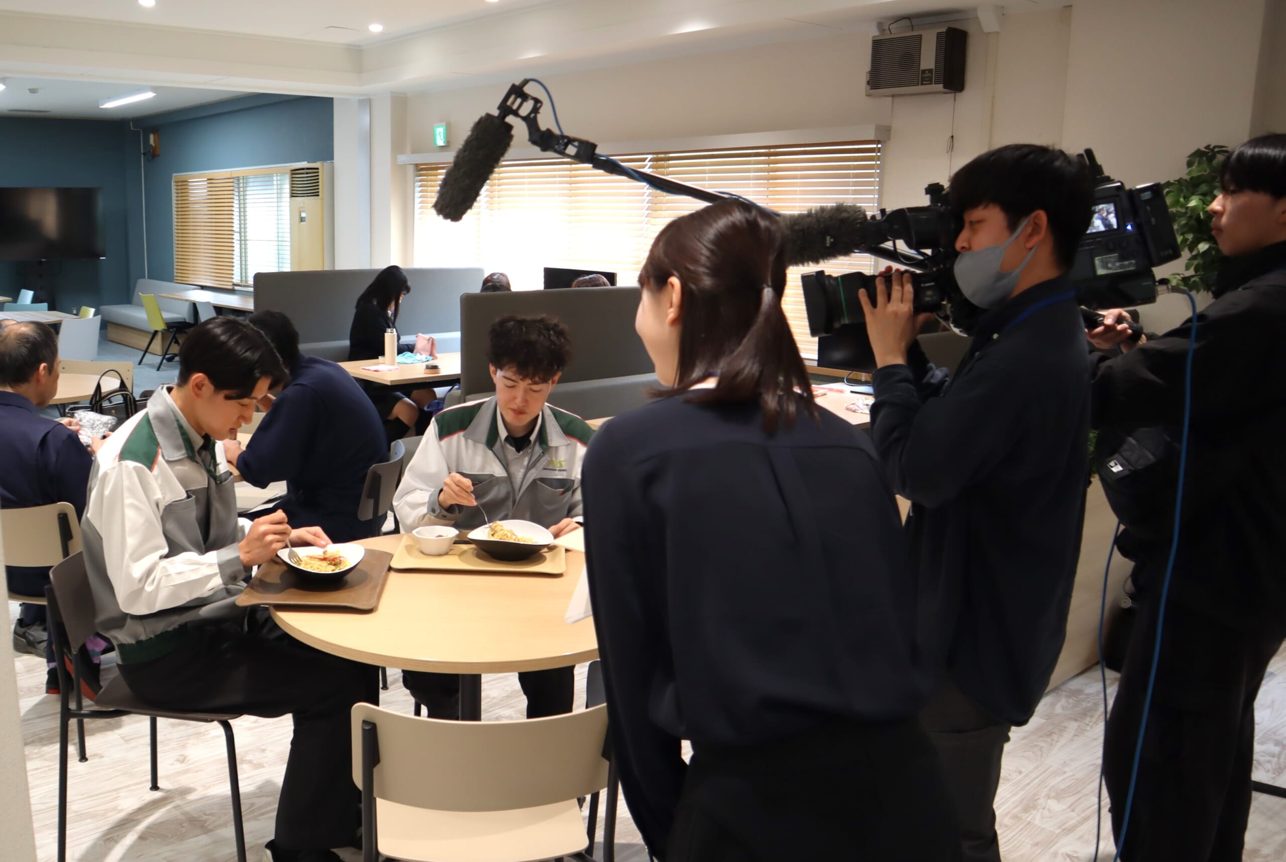 ■社員食堂でのSDGsと健康経営に取り組む様子を新潟県内に情報発信し、SDGsを普及させる意味でテレビ局や新聞社の報道記者の方に取材いただきました。